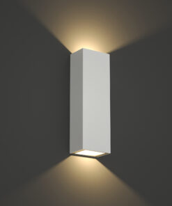Επιτοίχιο φωτιστικό LED από την οικογένεια Lanier σε λευκό χρώμα. Η θερμοκρασία χρώματος είναι 3000K.