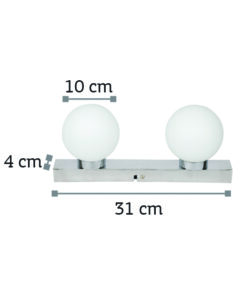 Πρόκειται για ένα επιτοίχιο φωτιστικό από χρώμιο μέταλλο λευκή οπαλίνα και δύο λαμπτήρες. Η μίνιμαλ σχεδίαση και το σχήμα του το τοποθετεί σε μοντέρνους χώρους εσωτερικής διακόσμησης. Τοποθετείται και ως φωτιστικό οροφής!