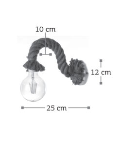 Επιτοίχιο φωτιστικό κατασκευασμένο από καφέ σχοινί με διακριτικές μαύρες λεπτομέρειες. Ιδανική για ποικίλους εσωτερικούς χώρους, αφού διαχέει το φως ομοιόμορφα.