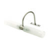 Πρόκειται για ένα επιτοίχιο φωτιστικό κατασκευασμένο από μέταλλο σε νίκελ ματ απόχρωση με δύο λαμπτήρες που καλύπτονται από κυλινδρικό γυαλί αμμοβολής με διάφανες λεπτομέρειες. Είναι η ιδανική επιλογή για φωτισμό μπάνιου τοποθετημένο πάνω από τον καθρέπτη αφού το φως διαχέεται ομοιόμορφα.