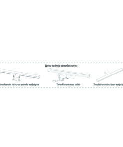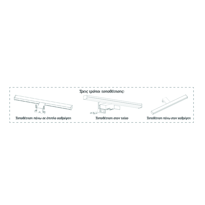 Πρόκειται για ένα επιτοίχιο φωτιστικό κατασκευασμένο από πλαστικό σε χρώμιο απόχρωση. Η λευκή του επιφάνεια καλύπτει τον led φωτισμό απόχρωσης φυσικού χρώματος. Μπορεί να τοποθετηθεί με τρεις τρόπους.