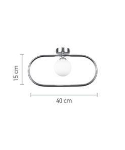 Επιτοίχιο φωτιστικό σε φινίρισμα χρωμίου, με οβάλ μεταλλικό πλαίσιο διαστάσεων 15 × 40 cm. Διαθέτει κεντρικό σφαιρικό διαχύτη από λευκή οπαλίνα, ο οποίος εξασφαλίζει ομοιόμορφη διάχυση του φωτός 360° χωρίς θαμβώσεις.Η μεταλλική κατασκευή διακρίνεται για την ανακλαστική της επιφάνεια, η οποία λειτουργεί συμπληρωματικά με τον γυάλινο διαχύτη για τη βέλτιστη εξομάλυνση του φωτός. Ο σχεδιασμός του επιτρέπει την τοποθέτηση σε οριζόντια ή κάθετη διάταξη, καθιστώντας το ιδανικό για συμπληρωματική φωταγώγηση και αρχιτεκτονική ανάδειξη εσωτερικών επιφανειών.Διαθέτει ντουί τύπου G9, παρέχοντας στον επαγγελματία την ευελιξία επιλογής λαμπτήρα LED ως προς την ισχύ και τη θερμοκρασία χρώματος, ενώ παράλληλα εξασφαλίζει ευκολία στη συντήρηση.ΧαρακτηριστικόΠεριγραφήΤύπος ΝτουίG9Αριθμός Λαμπτήρων1Υλικό ΚατασκευήςMetal & White Opal GlassΧρώμαΧρώμιοΔιαστάσεις15 × 40 cmΤοποθέτησηΕπιτοίχια (Οριζόντια ή Κάθετη)Εφαρμογή ΧώρουΕσωτερικός χώροςΒαθμός ΠροστασίαςIP20