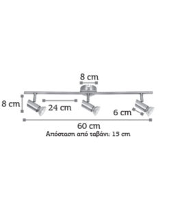 Πρόκειται για ένα μεταλλικό σποτ σε νίκελ ματ απόχρωση με τρεις λαμπτήρες. Το μπροστινό μέρος του κινείται προς οποιαδήποτε κατεύθυνση.