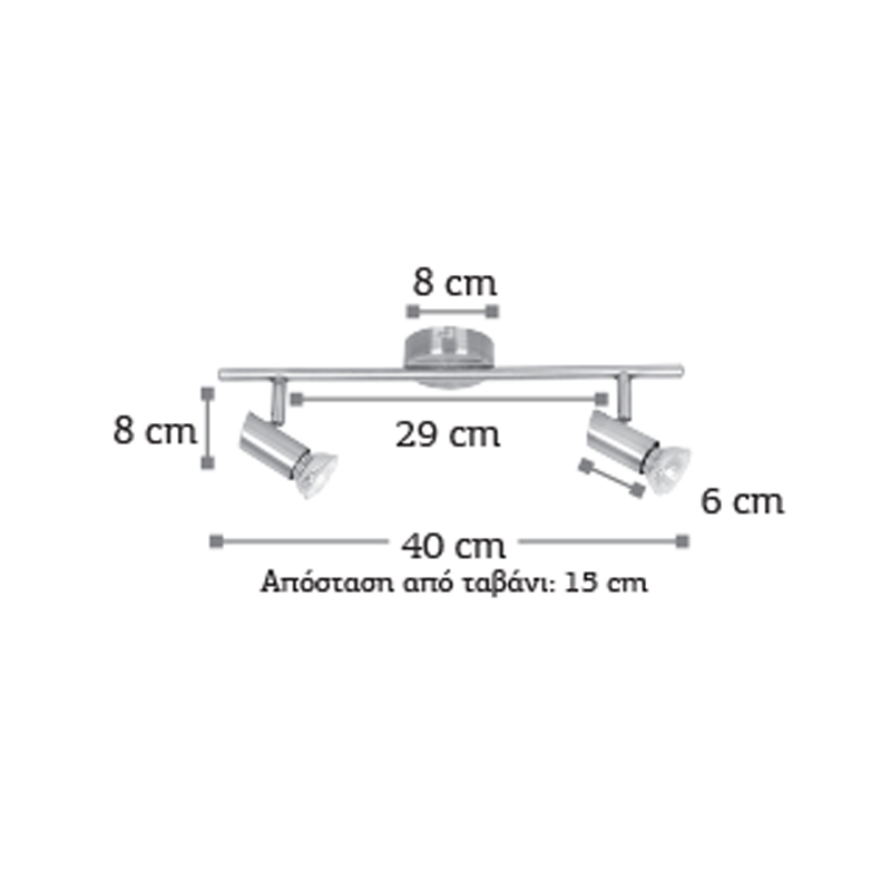 Πρόκειται για ένα μεταλλικό σποτ σε οξυντέ απόχρωση με δύο λαμπτήρες. Το μπροστινό μέρος του κινείται προς οποιαδήποτε κατεύθυνση.