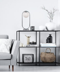Πρόκειται για ένα φωτιστικό κατασκευασμένο από χρώμιο μέταλλο και λευκή οπαλίνα. Το φως διαχέεται ομοιόμορφα.