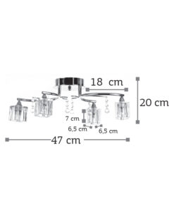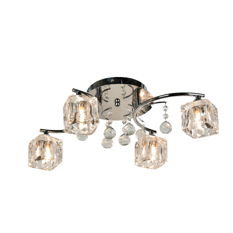 Πρόκειται για ένα φωτιστικό οροφής από χρώμιο μέταλλο και τέσσερις λαμπτήρες που καλύπτονται από διάφανα γυαλιά. Αυτό που το κάνει ιδιαίτερο είναι τα διακριτικά διάφανα κρύσταλλα που κρέμονται στο εσωτερικό του και του προσθέτουν λάμψη.