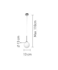 Πρόκειται για ένα χρυσαφί μεταλλικό φωτιστικό με λευκή οπαλίνα. Το ύψος του μπορεί να ρυθμιστεί ώστε να προσαρμοστεί στον μοντέρνο χώρο τοποθέτησής του.