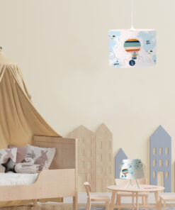 Πρόκειται για ένα κρεμαστό παιδικό φωτιστικό με λευκή ρυθμιζόμενη ανάρτηση και πολύχρωμο καπέλο.