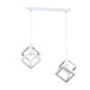 Πρόκειται για ένα μεταλλικό κρεμαστό φωτιστικό σε χρώμα λευκό. Η μίνιμαλ γεωμετρική του σχεδίαση το τοποθετεί σε οποιονδήποτε μοντέρνο εσωτερικό χώρο. Η ανάρτησή του ρυθμίζεται για να λάβει το επιθυμητό ύψος. Το φως διαχέεται σε όλον τον χώρο ομοιόμορφα.