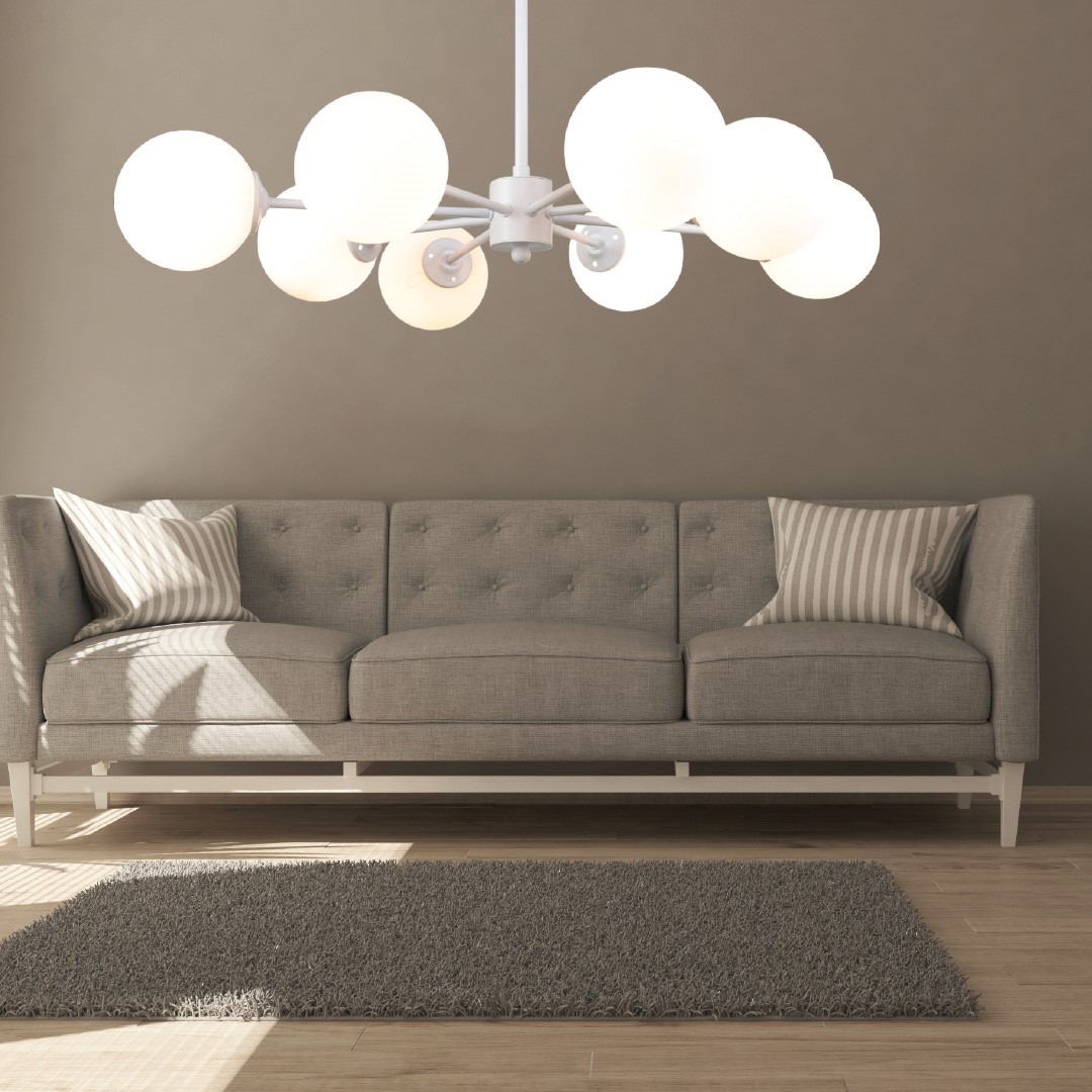 InLight Κρεμαστό φωτιστικό από λευκό μέταλλο και λευκή οπαλίνα 6XG9 D:70cm (5012-8)