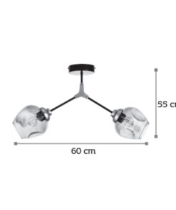 Πρόκειται για ένα μεταλλικό κρεμαστό φωτιστικό μαύρου χρώματος με χρυσαφί διακριτικά στοιχεία και δύο λαμπτήρες. Το γυαλί είναι διάφανο, αλλά υπάρχει και η επιλογή του φιμέ χρώματος. Η μίνιμαλ σχεδίασή του το τοποθετεί σε οποιονδήποτε μοντέρνο εσωτερικό χώρο.