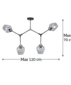 Πρόκειται για ένα μεταλλικό κρεμαστό φωτιστικό μαύρου χρώματος με χρυσαφί διακριτικά στοιχεία και τέσσερις λαμπτήρες. Το γυαλί είναι διάφανο, αλλά υπάρχει και η επιλογή του φιμέ χρώματος. Οι βραχίονες κινούνται για να λάβουν το επιθυμητό σχήμα. Η μίνιμαλ σχεδίασή του το τοποθετεί σε οποιονδήποτε μοντέρνο εσωτερικό χώρο.