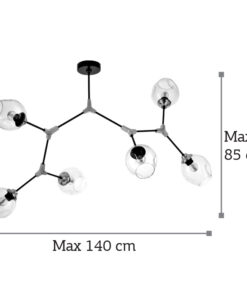 Πρόκειται για ένα μεταλλικό κρεμαστό φωτιστικό μαύρου χρώματος με νίκελ διακριτικά στοιχεία και έξι λαμπτήρες. Το γυαλί είναι διάφανο, αλλά υπάρχει και η επιλογή του φιμέ χρώματος. Οι βραχίονες κινούνται για να λάβουν το επιθυμητό σχήμα. Η μίνιμαλ σχεδίασή του το τοποθετεί σε οποιονδήποτε μοντέρνο εσωτερικό χώρο.