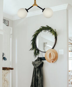 Πρόκειται για ένα κρεμαστό φωτιστικό από μαύρο μέταλλο και νίκελ ματ λεπτομέρειες. Η λευκή οπαλίνα δένει αρμονικά με το υπόλοιπο σώμα και διαχέει το φως ομοιόμορφα σε όλον τον χώρο.