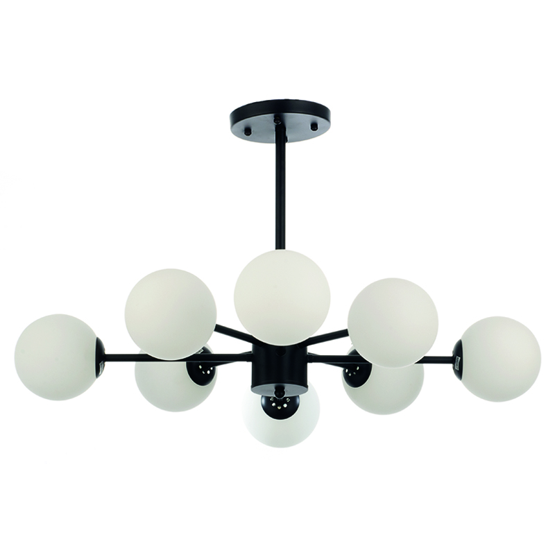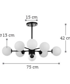 InLight Κρεμαστό φωτιστικό από μαύρο μέταλλο και λευκή οπαλίνα 8XG9 D:75cm (5315-8)
