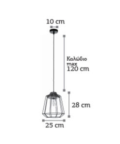 InLight Κρεμαστό φωτιστικό από μαύρο μέταλλο 1XE27 D:10cm (4400-BL)