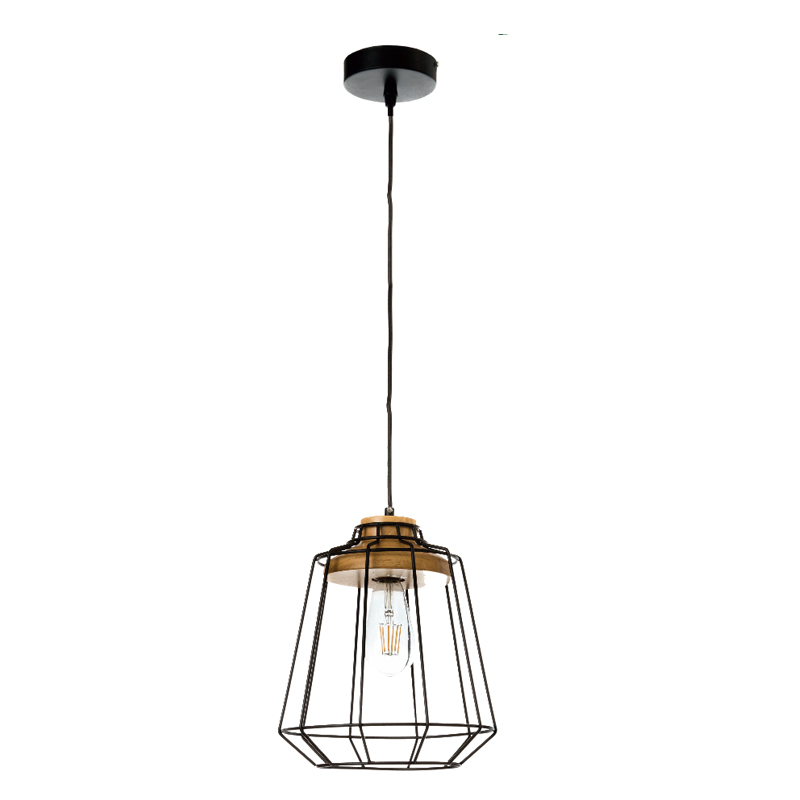 InLight Κρεμαστό φωτιστικό από μαύρο μέταλλο και ξύλο 1XE27 D:25cm (4388)