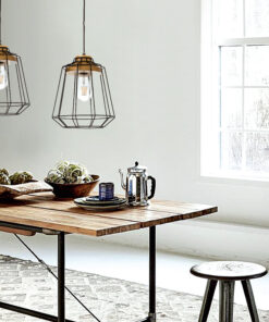 Πρόκειται για ένα φωτιστικό οροφής κατασκευασμένο από μέταλλο. Η σχεδίασή του επιτρέπει τη διάχυση του φωτός. Το ξύλο στην ανάρτηση προσδίδει τη ζεστασιά που χρειάζεται. Επιπλέον ρυθμίζεται για να λάβει το ιδανικό ύψος για κάθε χώρο.