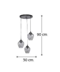 Πρόκειται για ένα κρεμαστό φωτιστικό από νίκελ ματ μέταλλο και διάφανο γυαλί με τρεις λαμπτήρες. Διατίθεται και η επιλογή του φιμέ γυαλιού. Το ύψος της ανάρτησης ρυθμίζεται στον κάθε μοντέρνο εσωτερικό χώρο τοποθέτησης του.