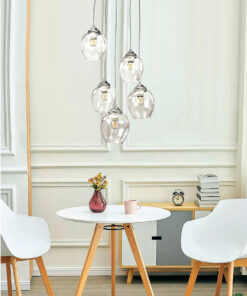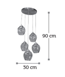 InLight Κρεμαστό φωτιστικό από νίκελ ματ μέταλλο και διάφανο γυαλί 5XE27 D:30cm (4474-5-NM)