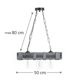 InLight Κρεμαστό φωτιστικό από ξύλο και σχοινί 3XE27 D:50cm (5318-3)