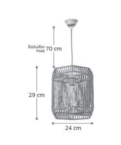 Ένα κρεμαστό φωτιστικό κατασκευασμένο από καφέ σχοινί κατάλληλο για ποικίλους εσωτερικούς χώρους. Αποτελεί την ιδανική επιλογή για όποιον επιθυμεί μια πιο χαλαρή διάθεση στον χώρο του. Η ανάρτηση προσαρμόζεται στο ύψος του κάθε χώρου.