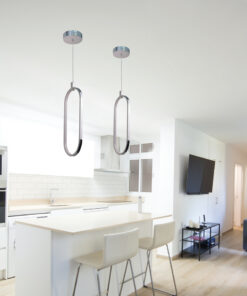 Πρόκειται για ένα χρώμιο μεταλλικό κρεμαστό φωτιστικό μίνιμαλ σχεδίασης. Η λευκή ακρυλική του επιφάνεια καλύπτει τον LED φωτισμό θερμής απόδοσης.