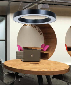 Πρόκειται για ένα λευκό κρεμαστό φωτιστικό. Στο κάτω μέρος του υπάρχει λευκή ακρυλική επιφάνεια που καλύπτει τον led φωτισμό απόχρωσης φυσικού χρώματος. Η ανάρτησή του είναι ρυθμιζόμενη ώστε να προσαρμοστεί σε κάθε χώρο. Μπορεί να τοποθετηθεί και ως φωτιστικό οροφής. Η γεωμετρική του σχεδίαση ταιριάζει σε όλους τους μοντέρνους χώρους.
