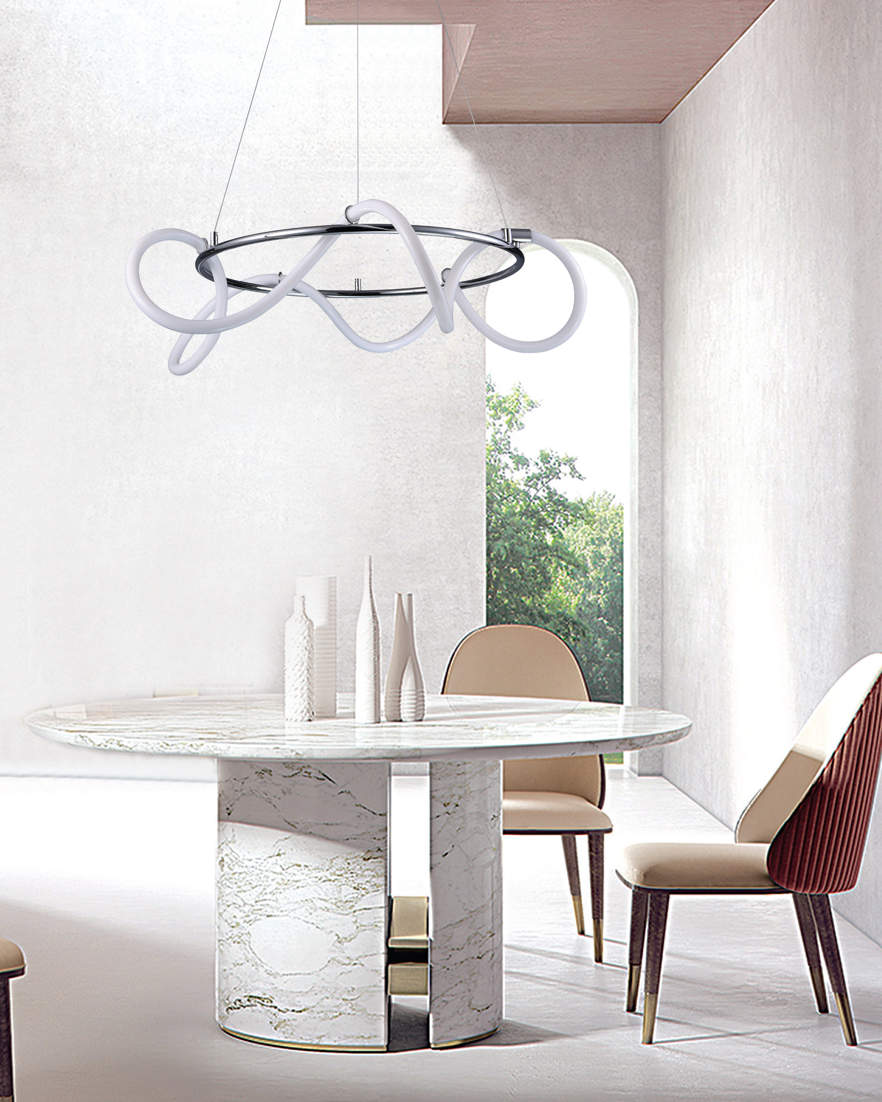 InLight Κρεμαστό φωτιστικό LED 80W 3000K από χρώμιο μέταλλο και σωλήνα σιλικόνης D:80cm (6017-A-CH)