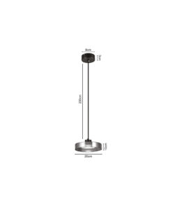 Inlight Κρεμαστό φωτιστικό LED απο μαύρο μέταλλο και φιμέ γυαλί, 20x10cm, 3CCT και 1320LM (4075-1-Black/Smoky)