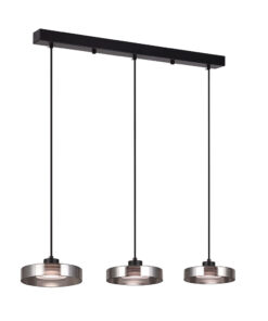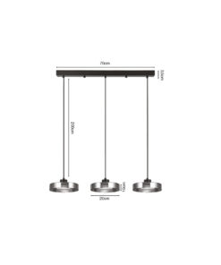 Πρόκειται για ένα κρεμαστό φωτιστικό από μαύρο μέταλλο και φιμέ γυαλί με τρείς λαμπτήρες. Το ύψος της ανάρτησης ρυθμίζεται στον κάθε μοντέρνο εσωτερικό χώρο τοποθέτησης του.