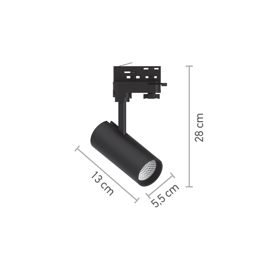 Μαύρο σποτ LED 10W για τριφασική ράγα.
