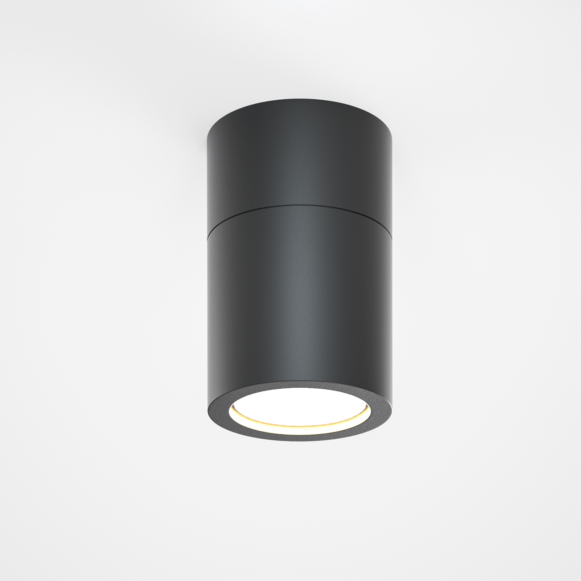 Σποτ οροφής από την οικογένεια Chelan σε ανθρακί χρώμα. Το φως του διαχέεται ομοιόμορφα και με το minimal σχεδιασμό του ταιριάζει σε όλους τους εξωτερικούς χώρους.